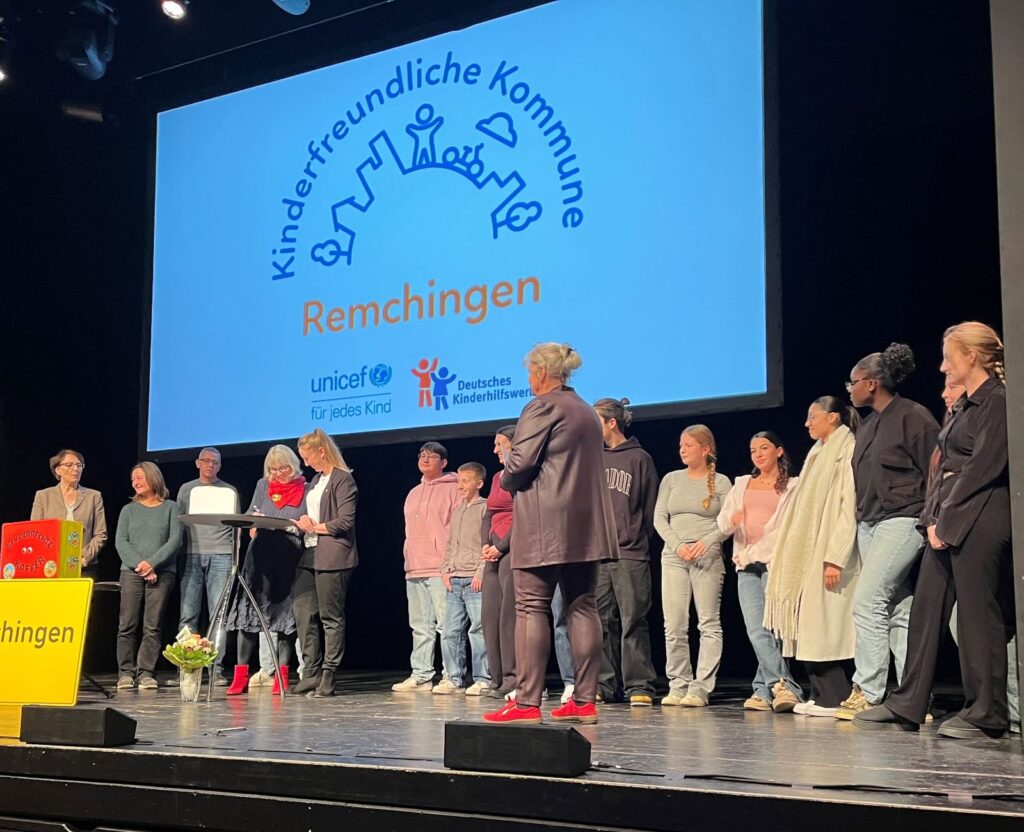 Zur feierlichen Überreichung des Siegels durften vor allem Jugendliche mit auf die Bühne kommen, die im Rahmen der Feier bzw. der Kinderfreundlichen Kommune involviert sind/waren. In ganz Deutschland gibt es nur 6 Kommunen, die dieses Siegel bisher verliehen bekommen haben und in Baden-Württemberg kann Remchingen neben Stuttgart als einzige Kommune mit dieser Auszeichnung glänzen.